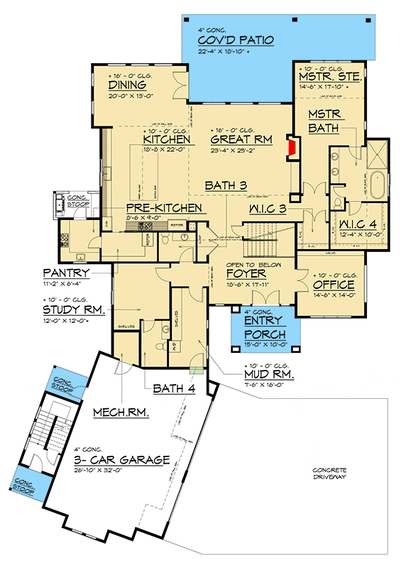 A notable feature is the 3-car garage with ample room for cars and storage. Connected to it, the mechanical room keeps all the house systems neatly tucked away.
