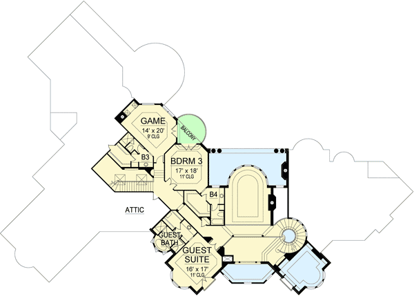 Near Bedroom 3, the game room offers plenty of space for a pool table or gaming setup.