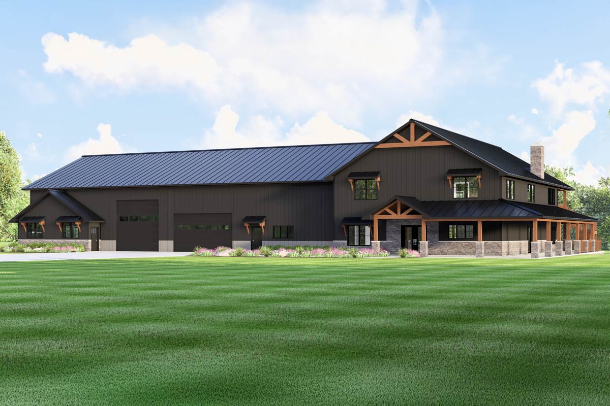 4-Bed Barndominium House Plan with Attached 2-Bed Apartment – 7781 Sq Ft (Floor Plan)