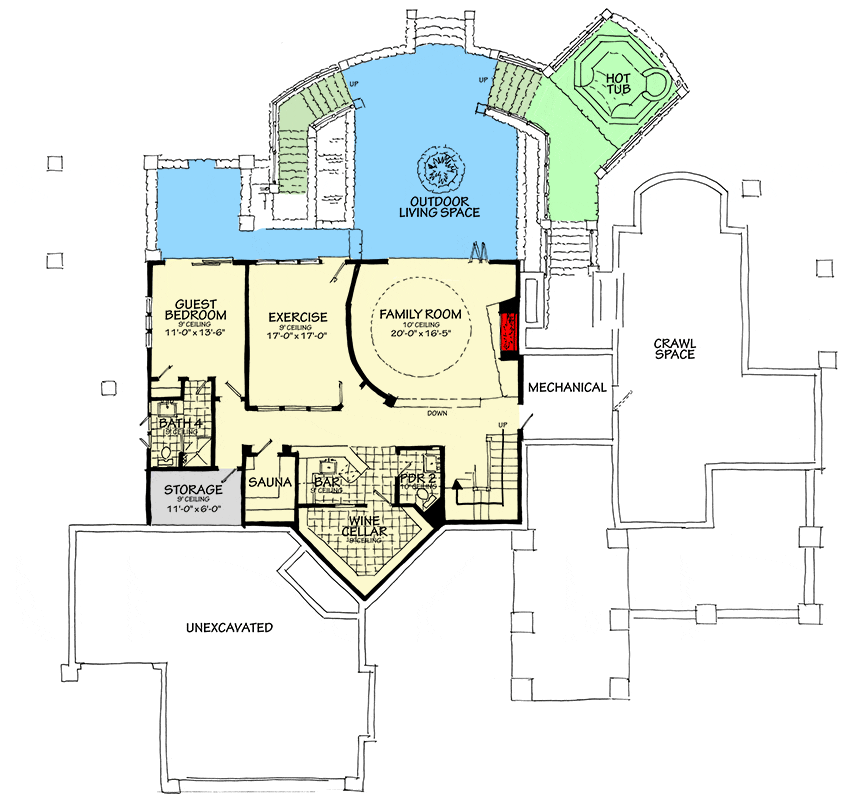 This area is packed with features you might want to use for relaxation and leisure. There’s a family room with a large accordion door, suggesting a seamless flow between the indoor-outdoor living space. It would be an awesome spot for movie nights or social events.