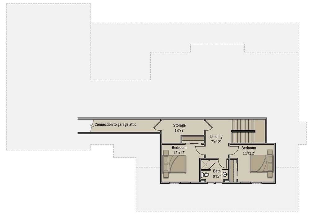 A hallway upstairs gives direct access to the garage attic. This is a rare find, and I think it’s a brilliant detail.