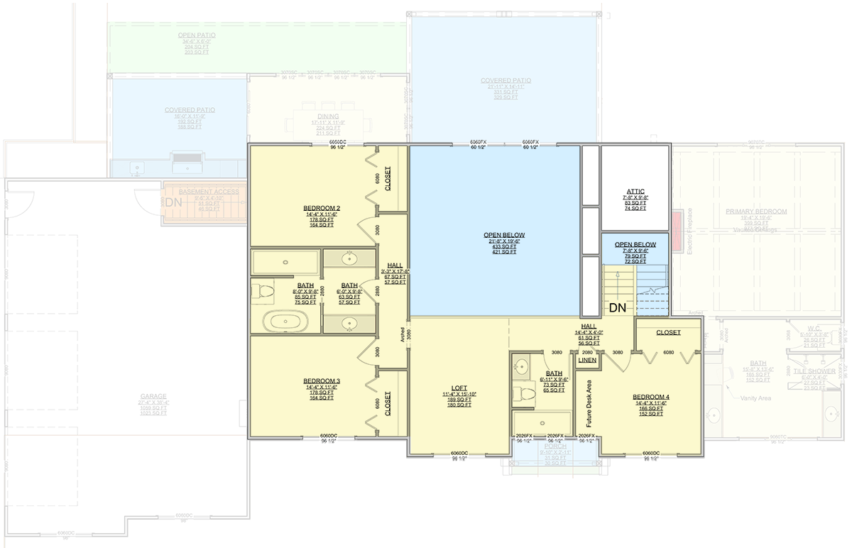 As you head up, you’ll notice that much of the upper level looks down over the living room and entry.