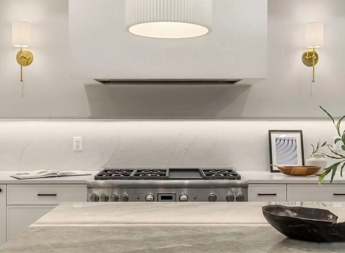 A walk-in pantry off to the side of the kitchen offers ample storage space for all your culinary needs. This feature not only boosts functionality but also helps maintain a clutter-free kitchen, adding to both aesthetics and efficiency.