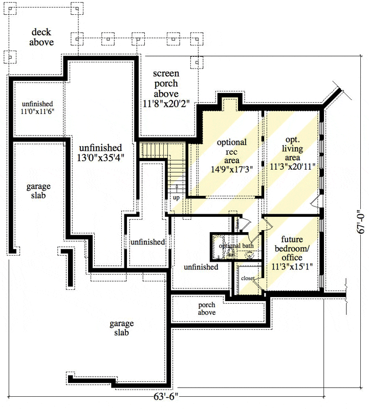 The lower level is designed with versatility in mind. The optional rec area offers a vast expanse for games, exercise, or media.