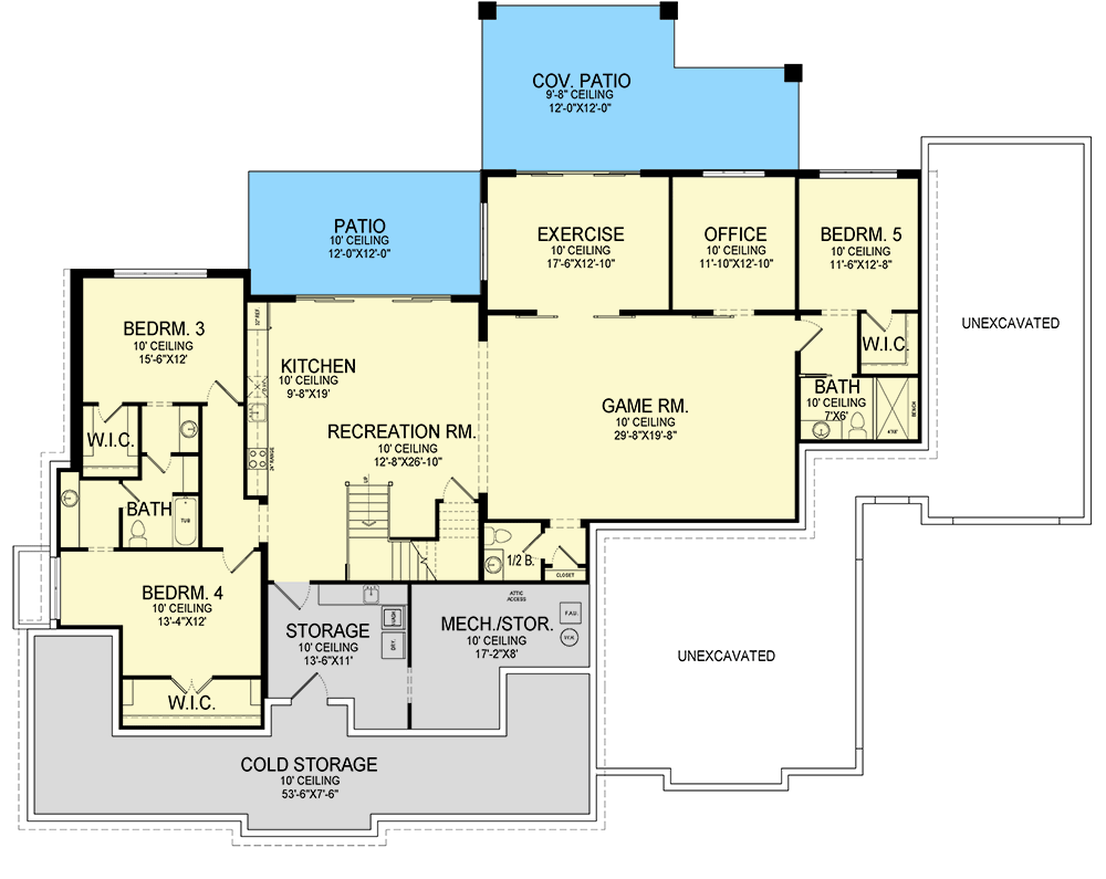 There’s space for a ping pong table, a media wall, or both. Direct access to the half bath means guests can spread out without crowding other spaces.
