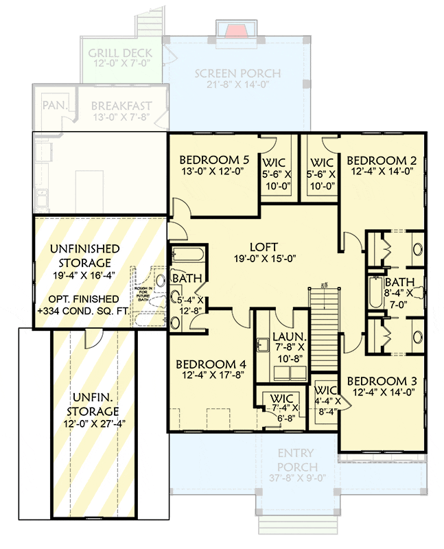The unfinished storage areas add an extra layer of adaptability. With the option to finish 334 square feet, you can create a space that truly caters to your unique lifestyle—be it a home theater or extra guest quarters.