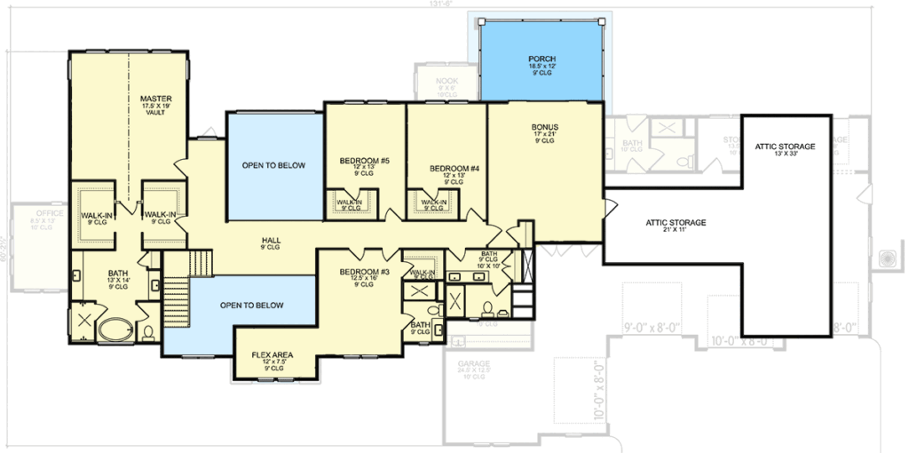 Let’s take the stairs up to the Hall, which connects to several bedrooms and other spaces. It’s open to below, making the upstairs feel connected to the rest of the house.