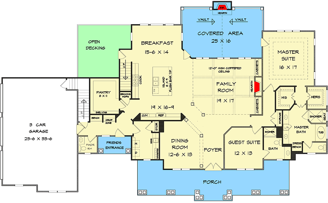 The covered entry leads straight into the drop zone, making it extra convenient for busy households.