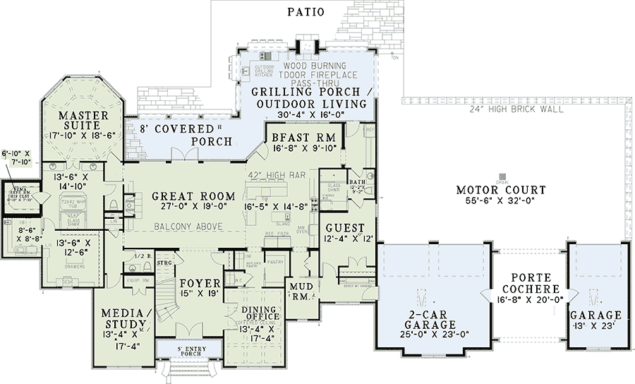 Estate Home Plan with Motorcourt – 4384 Sq Ft (Floor Plan)