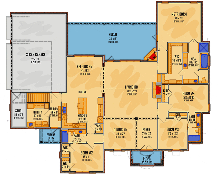 On the left side, the 3-car garage awaits, a testament to the home’s thoughtful design that caters to both convenience and elegance.