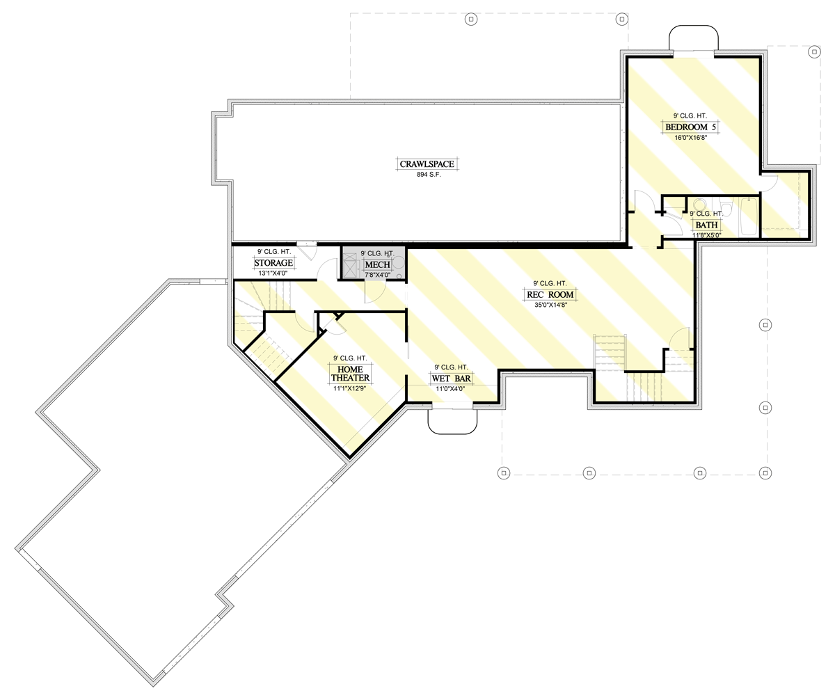Bedroom 5 sits at the far end of the basement and comes with its own bath.