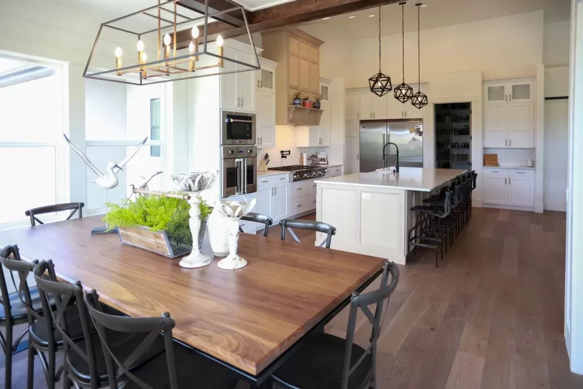 It’s open and filled with light, thanks to the rear windows. This is where you’ll gather for meals, conversations, and celebrations.
