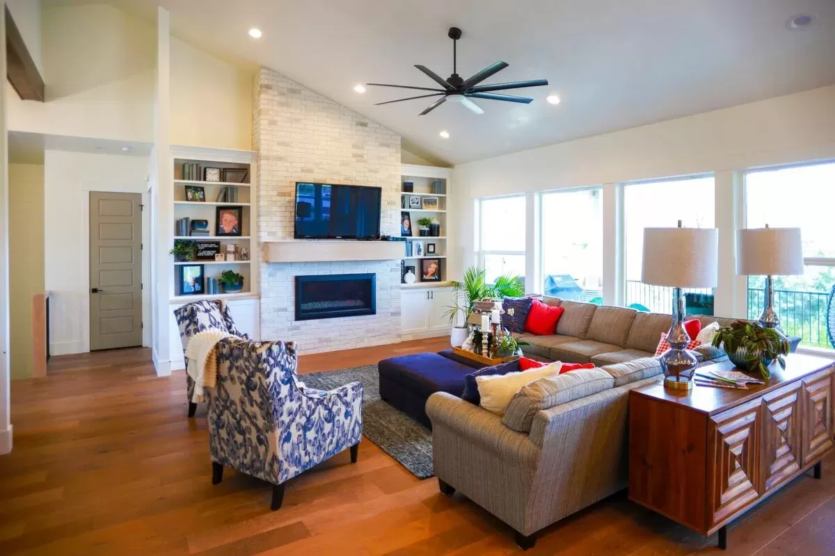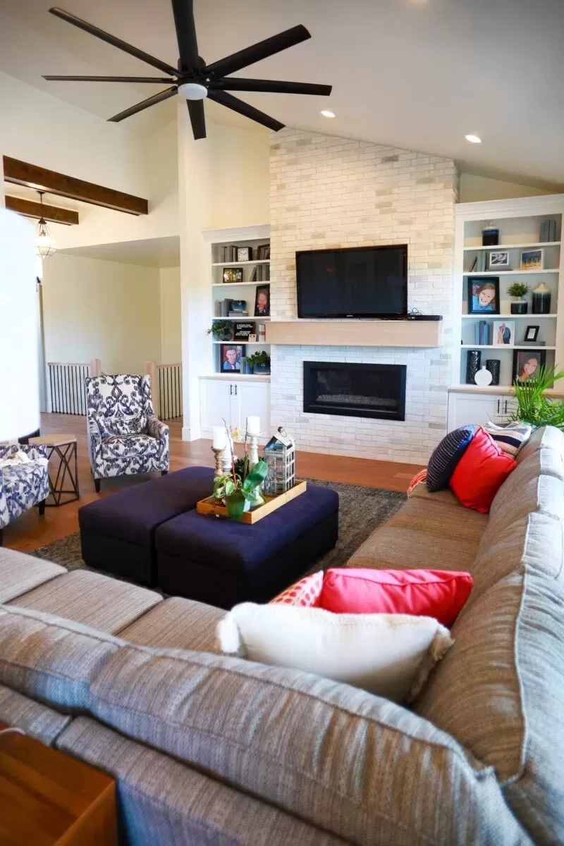 Imagine yourself curled up by the fireplace or hosting game nights with friends. It’s open to the kitchen, which means you can interact with family or guests while you cook.
