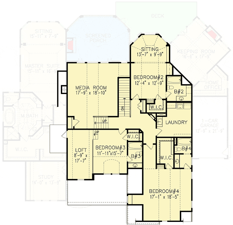 Each additional bedroom on the second floor is an enclave of privacy and comfort, featuring its own bathroom and walk-in closet. The media room becomes a focal point for entertainment, designed to bring together friends and family for movies, games, and more. Complementing this space is a large laundry room, making daily chores a breeze.
