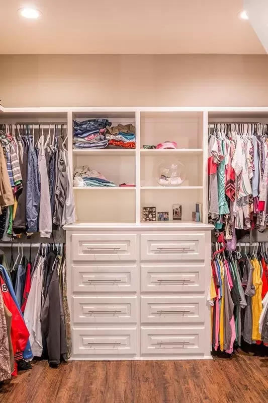 It boasts dual vanities, an enormous closet with a built-in dresser, and a walk-in shower featuring dual shower heads.