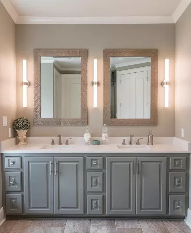 A continuation of the master suite, the master bathroom encases luxury in every detail. The dual vanities afford personal space, while the opulent walk-in shower invites unwinding under its dual shower heads.