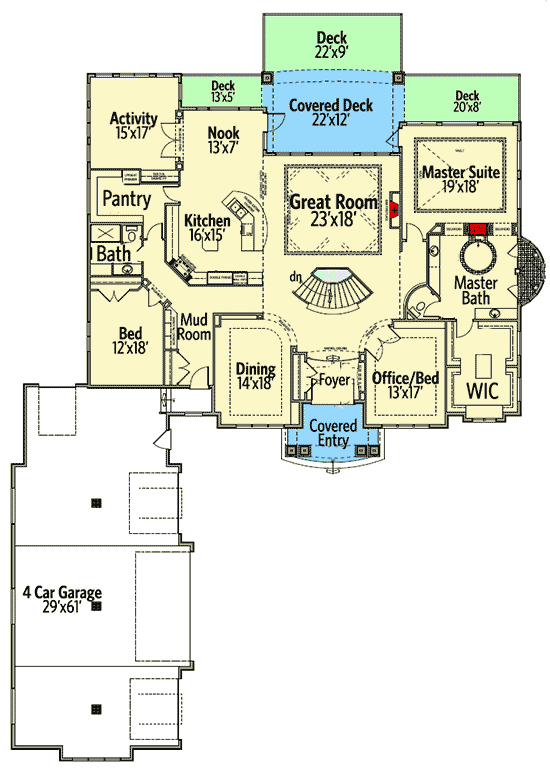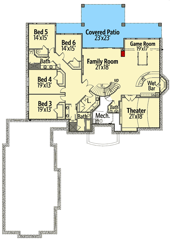 Just off the family room, the game room is the place for fun. Whether you want a pool table, foosball, or a home arcade, this is your go-to spot.
