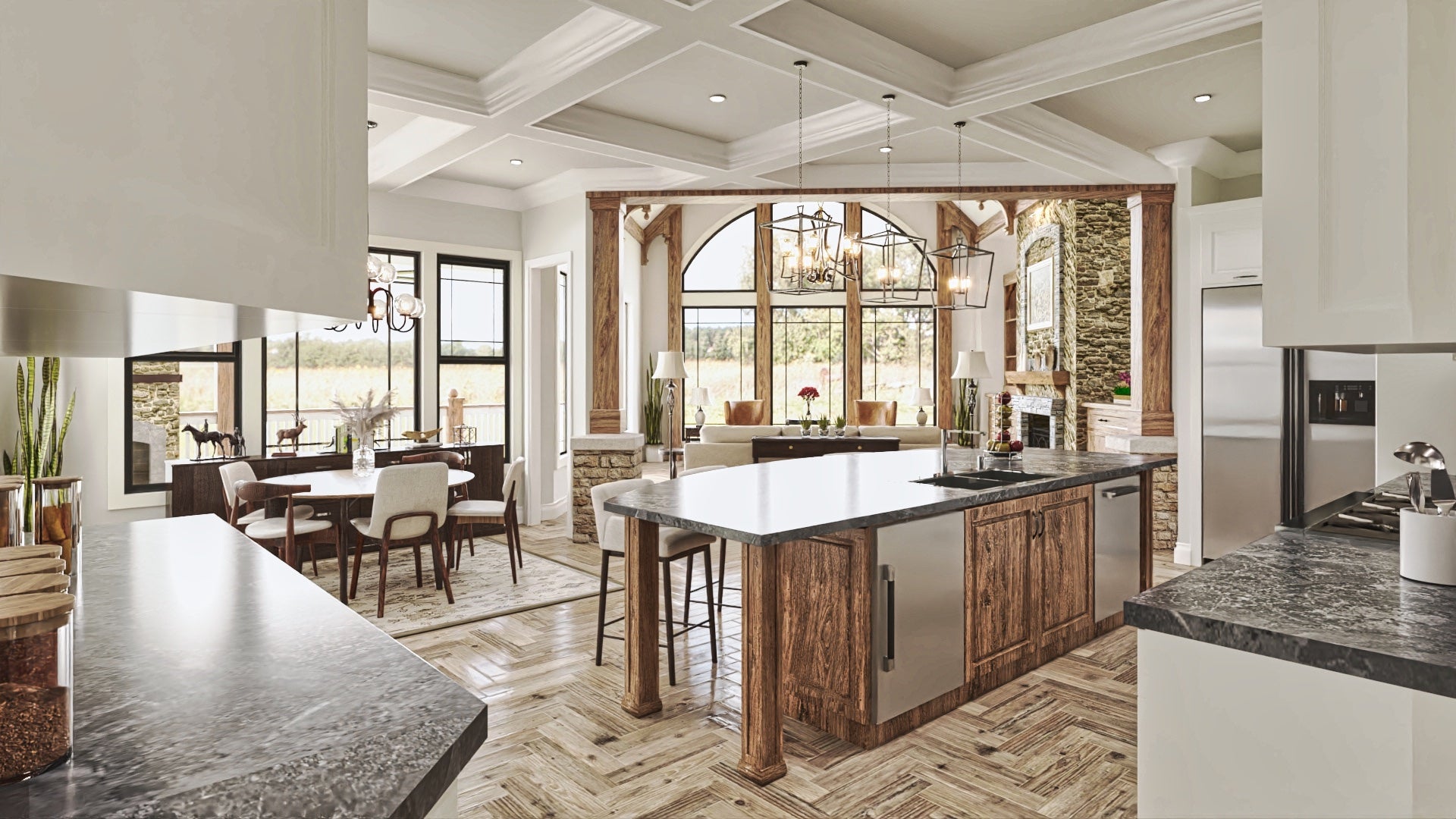 Stepping into the great room, you’ll be captivated by the high vaulted ceilings giving off that airy, spacious vibe.