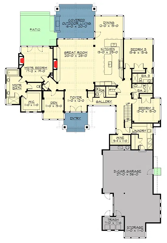 High End Mountain House Plan with Bunkroom (Floor Plan)