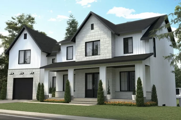 Country | Contemporary | Farmhouse | Modern Farmhouse | Traditional | Transitional Modern Farmhouse Plan with Barn-like Garage with Bonus Above – 4744 Sq Ft (Floor Plan)