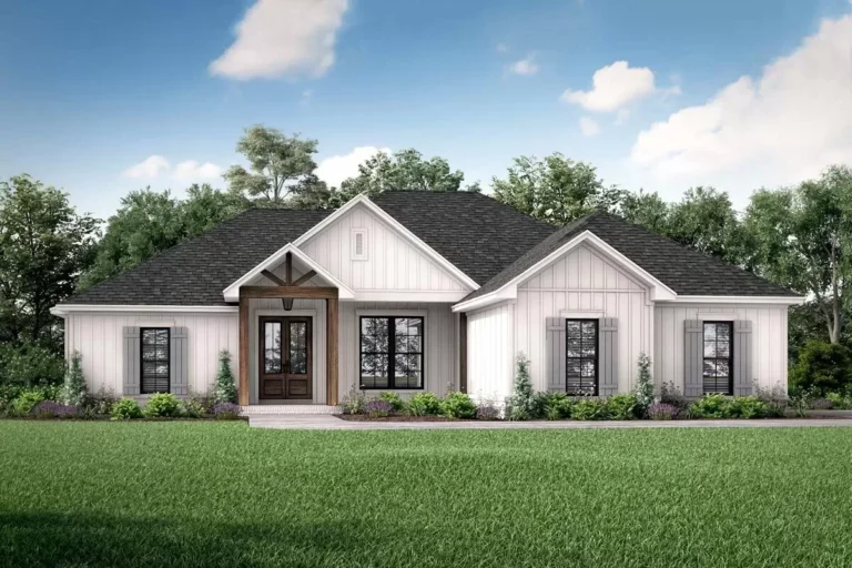 Country | Craftsman | Farmhouse | Southern 4-Bed Contemporary Farmhouse Plan with Private Master Suite (Floor Plan)