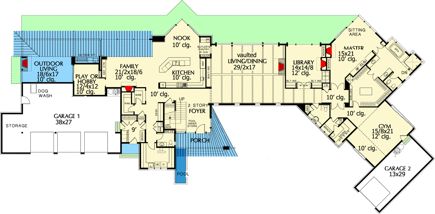 There are two garages, with Garage 1 offering ample storage and a dog wash area.