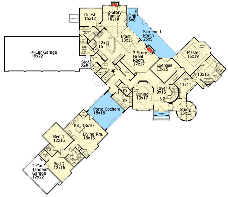 This provides a grand entrance beneath a covered drive-through. It adds elegance and practicality, particularly during inclement weather, ensuring easy access and shelter. It’s one of those features that subtly adds a touch of luxury to daily life.