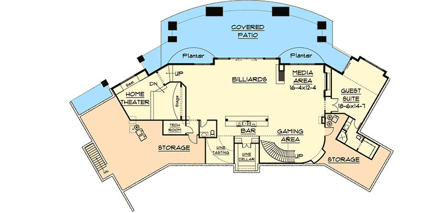 Next to the theater, a tech room handles your electronics and AV setup. This keeps the clutter out of sight and makes it easy to manage your systems, from streaming to gaming.