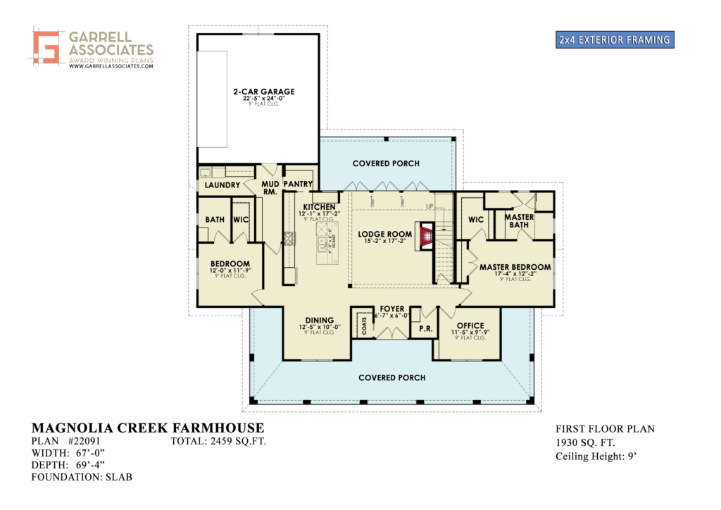 Stepping outside, there are two covered porches—one at the front and another at the rear.