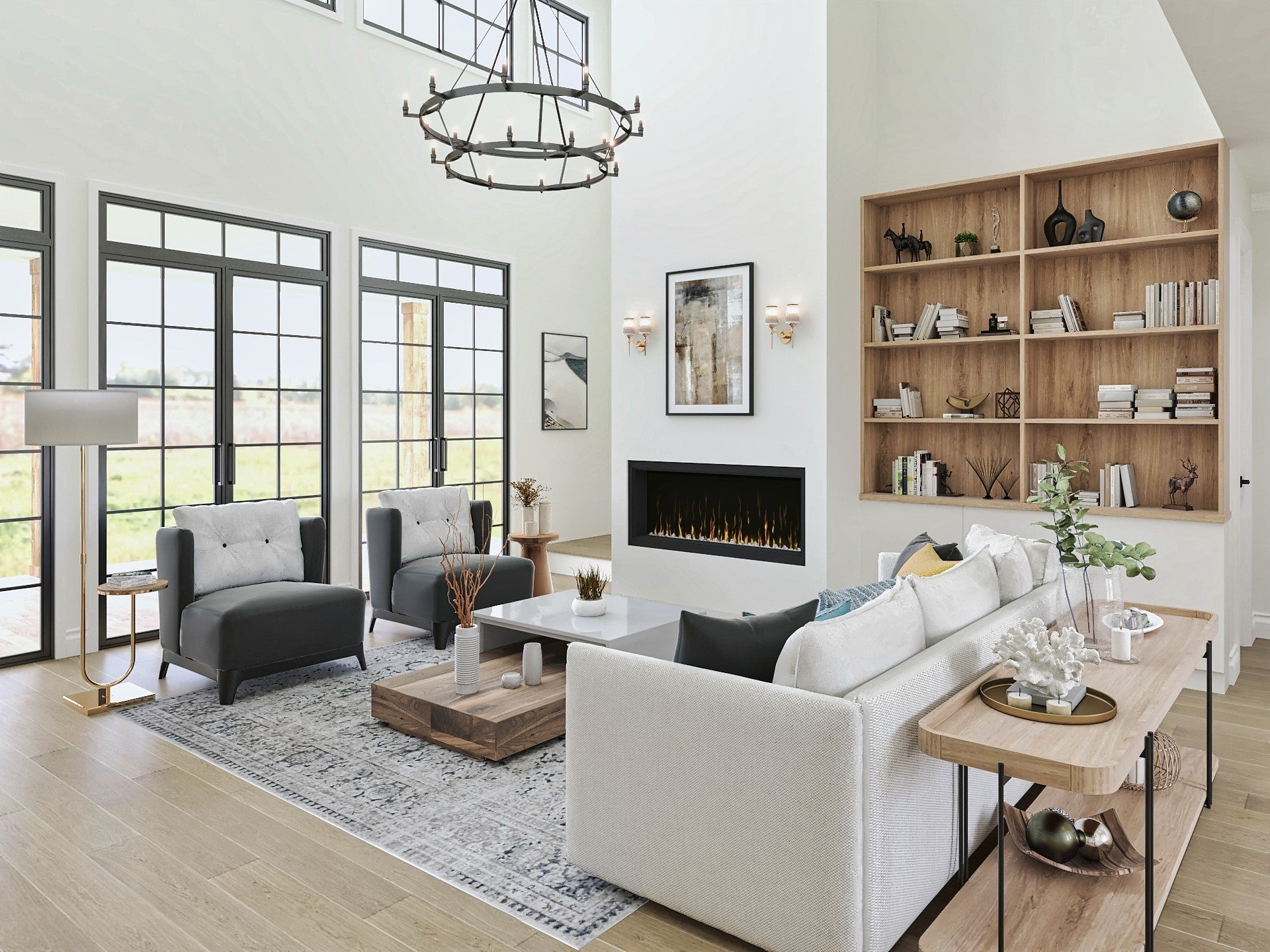 The great room’s open layout to the kitchen is a modern touch that fosters social interaction and allows for multitasking.