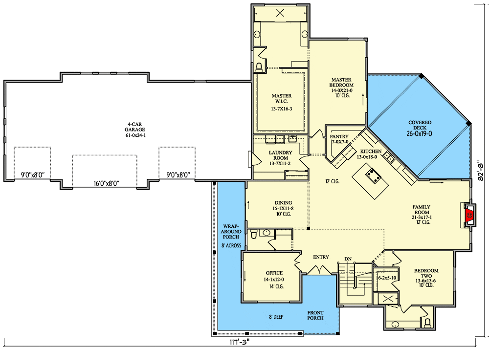 The massive 4-Car Garage offers unparalleled storage and utility opportunities. It’s perfect for car enthusiasts or families needing substantial storage space. Measuring over 61 feet across, you can finally have space for all those hobbies and tools.