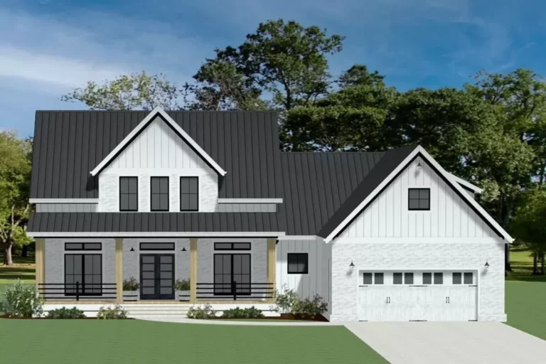 Country | Farmhouse | Modern Farmhouse | Traditional 4-Bedroom Modern Farmhouse Plan with 2-Beds and Loft Upstairs (Floor Plan)