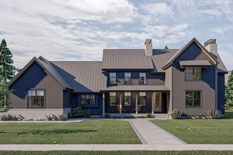 Country | Farmhouse | Modern Farmhouse | New American Stunning Modern Farmhouse Plan with Bonus Room over 4-Car Garage (Floor Plan)