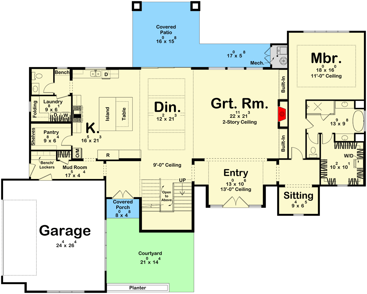 The main floor also includes a mechanical room set off to the side. This location keeps maintenance tasks out of the way of daily living.