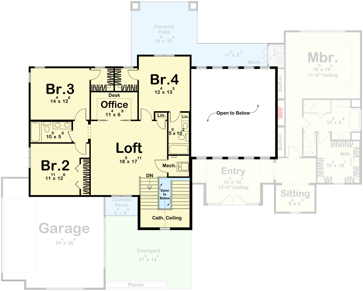 There’s space for a sectional, TV, or a reading spot. The loft overlooks the great room, so you still feel connected to the activity below while having your own space.