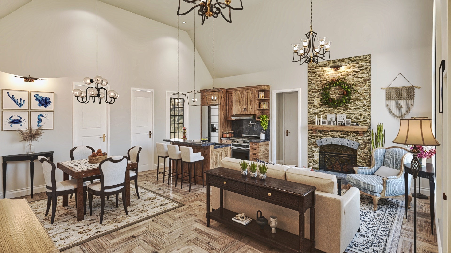There’s so much counter space for meal prep, and the island doubles as a breakfast bar. I appreciate how it opens up to the great room; it makes entertaining a breeze.