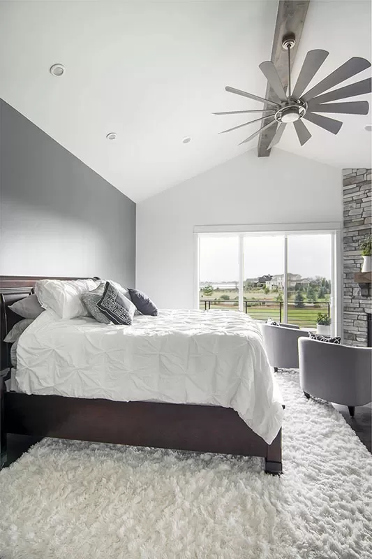 On the first floor, the master suite whispers luxury; its vaulted ceiling and personal fireplace set a stage for restorative nights.