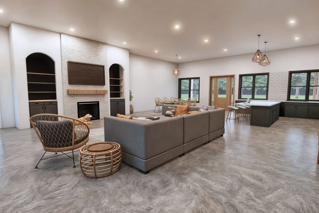 Would adding a cozy sectional and a fireplace make this room your family’s favorite hangout?