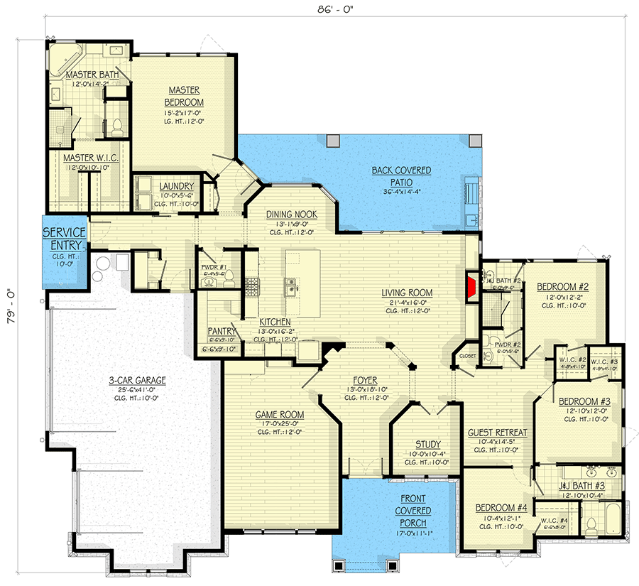 Bedroom #4 is located toward the front of the house, with its own walk-in closet and easy access to the guest retreat.