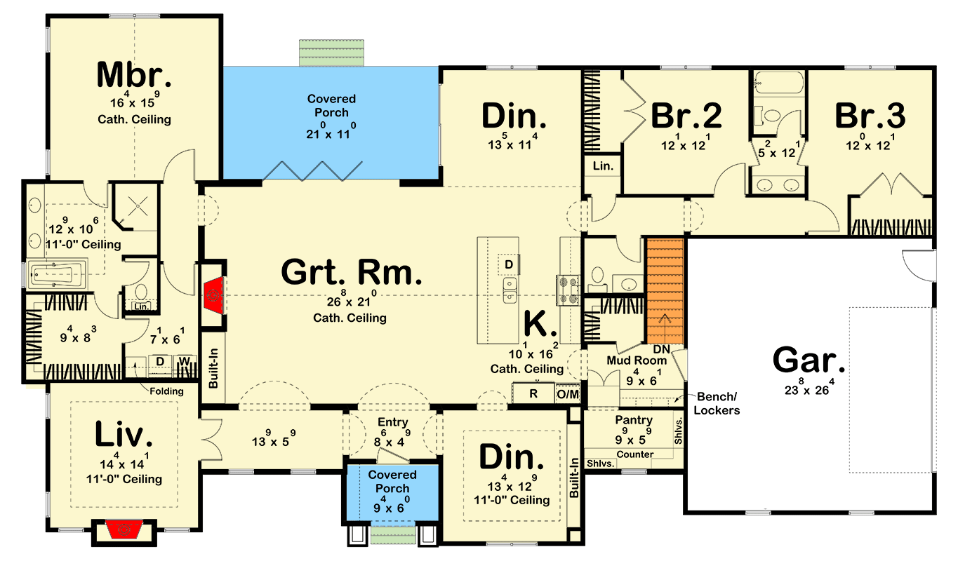 Single-Story Modern Cottage House Plan with Vaulted Great Room – 2918 Sq Ft (Floor Plan)