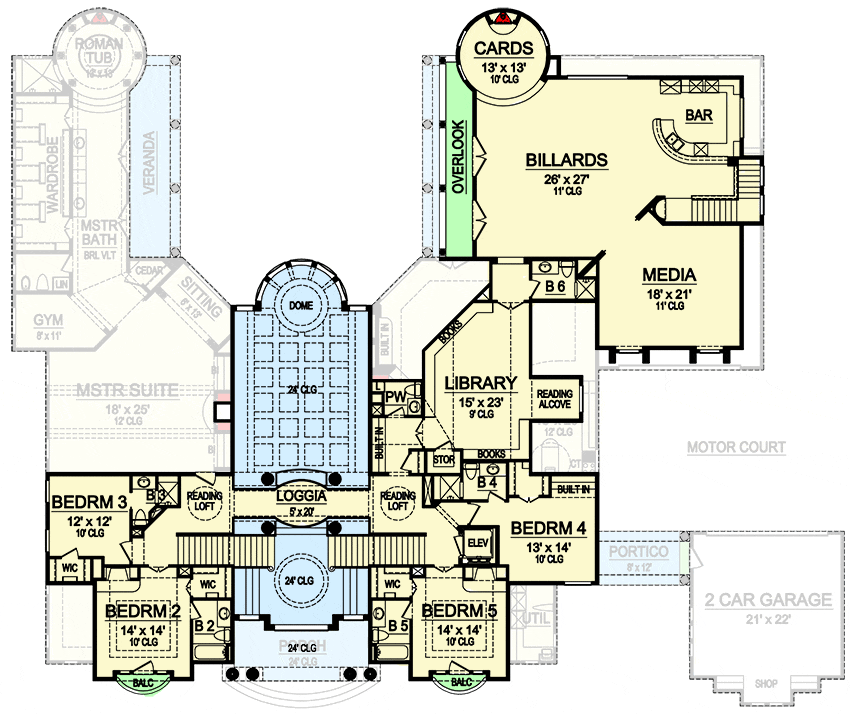 As you ascend the stairs, you’re greeted by an even more luxurious setting. The Billiards Room, adjacent to a card room with a wet bar, replicates the entertaining capabilities on the upper floor. Who wouldn’t want a movie night in the Media Center that complements these leisure facilities with style?
