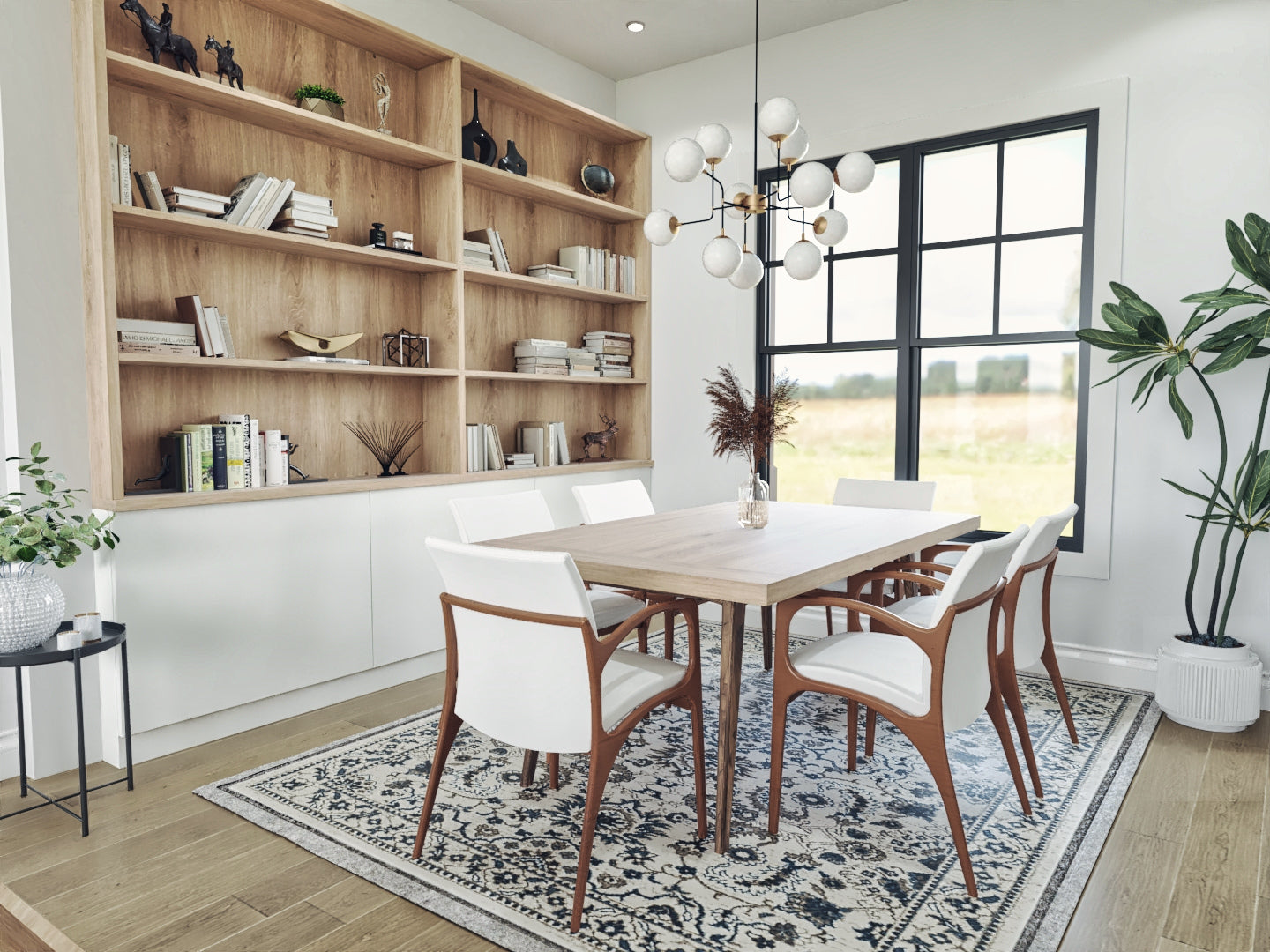 This one strikes a nice balance, don’t you think? With the staircase to the second floor conveniently placed, it doesn’t take up too much space and even adds a decorative element to the area.