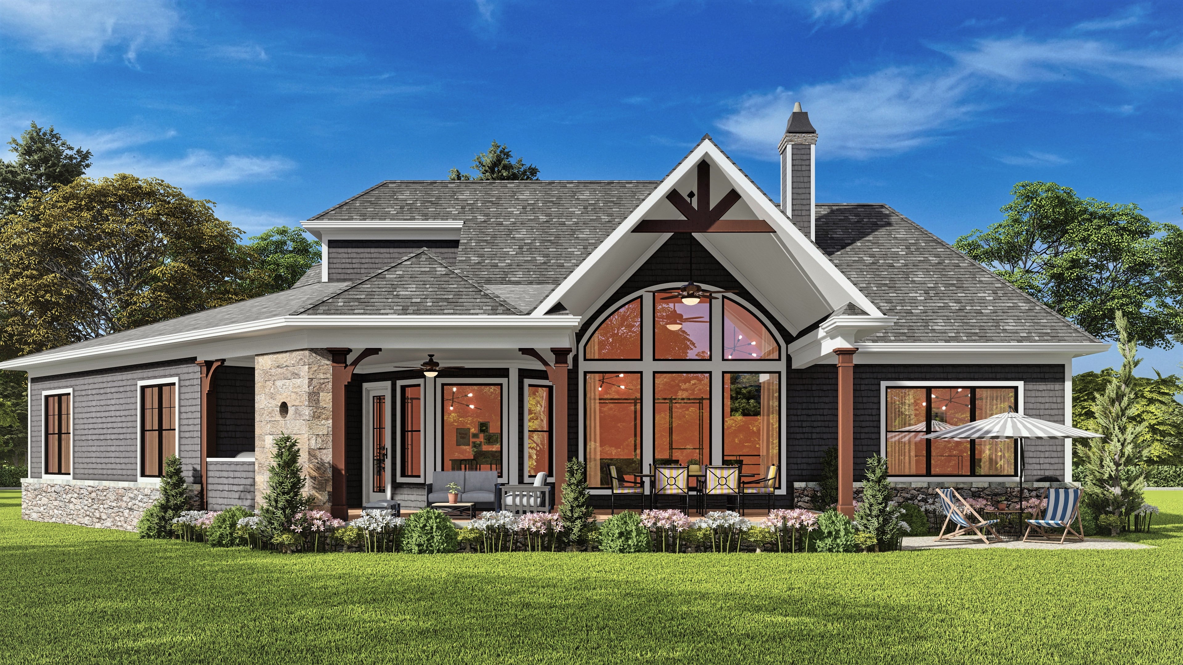 The fireplace is a key feature here, promising cozy nights. You might consider upgrading the fireplace to a dual-sided one that could also be enjoyed from the deck – adding that little extra touch of luxury.