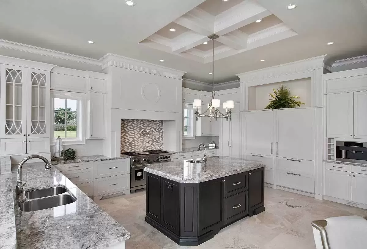 The kitchen is impressively large, designed for both utility and style. It includes an extensive island, plenty of storage, and modern appliances that meet the needs of any culinary endeavor.