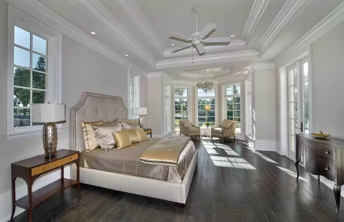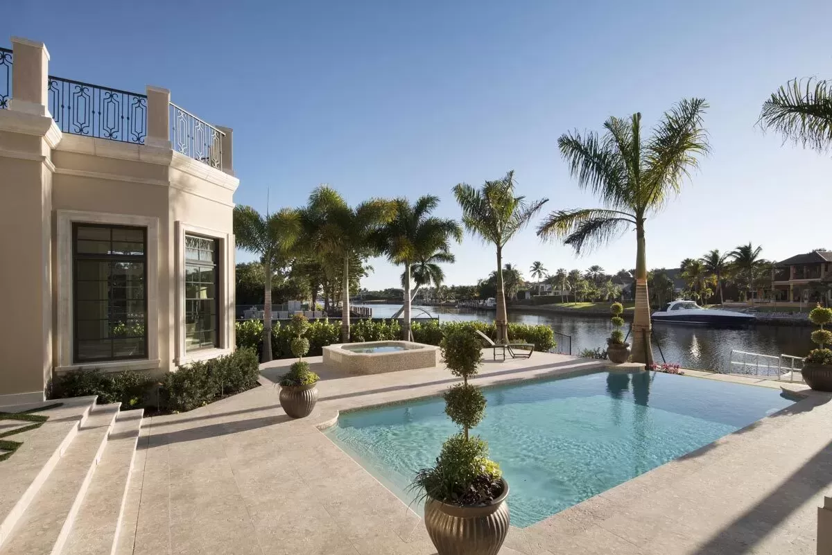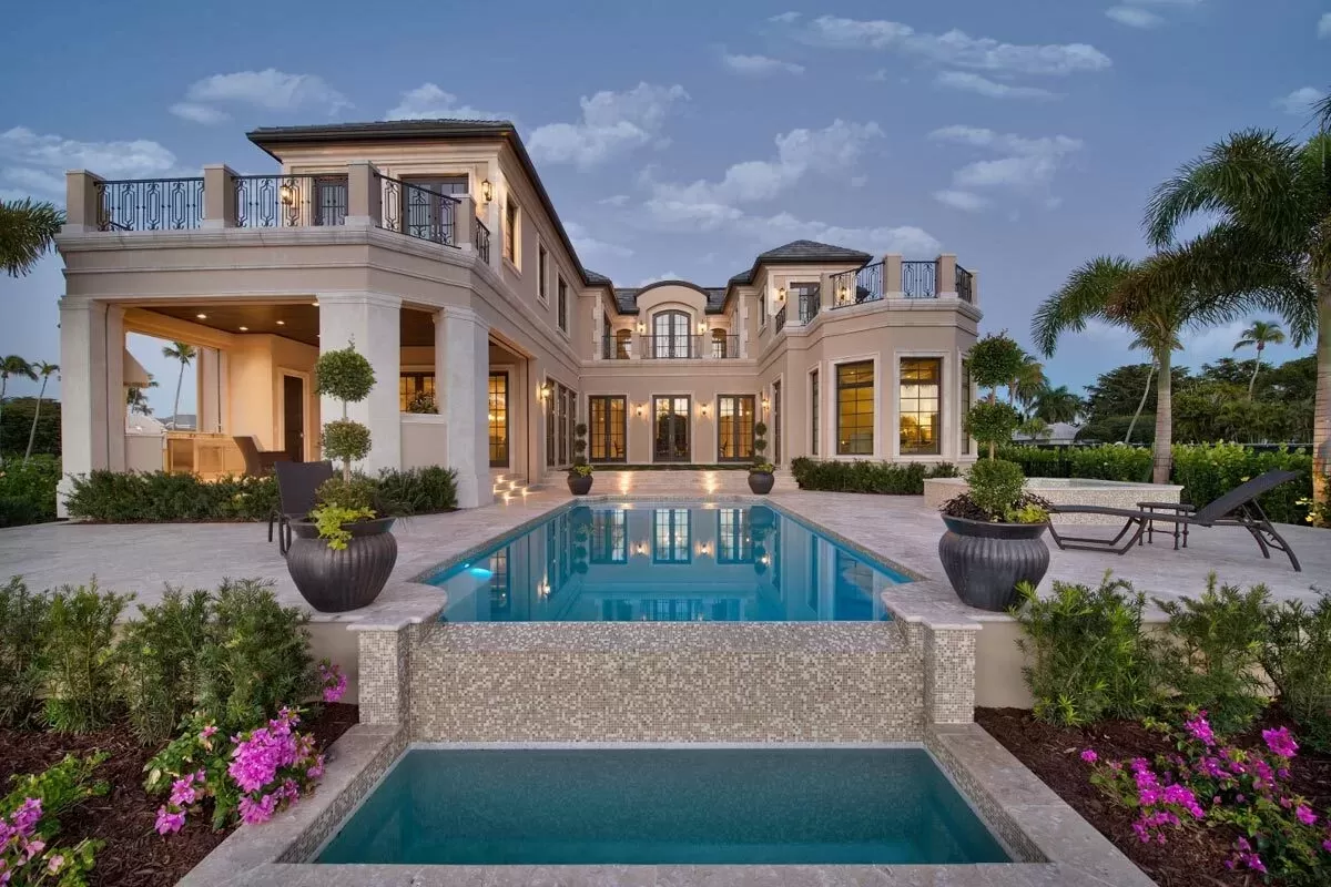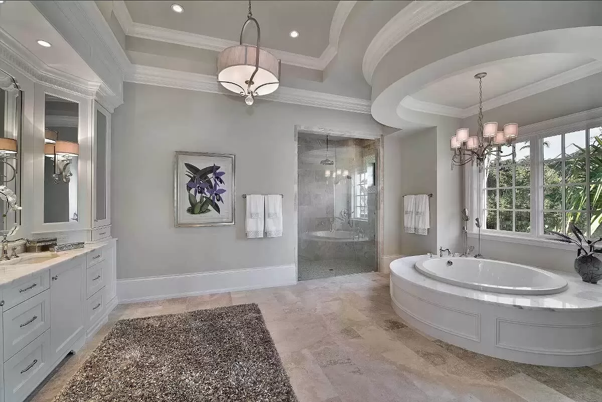 For even more practicality and comfort, I would consider adding personal touches such as smart home features to control lighting, heating, and security systems. The multiple French doors in common spaces suggest a focus on natural light and landscape integration, which can be enhanced by adding lush tropical greenery or potted indoor plants.